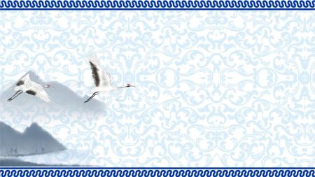 蓝色中国风飞鹤山水PPT背景