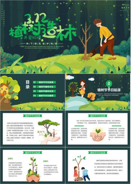 植树节节日宣传手绘PPT模板
