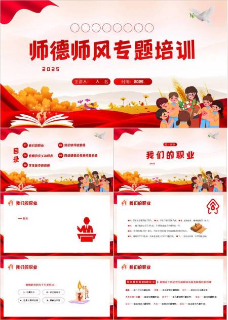 教师节师德培训国潮风PPT模板