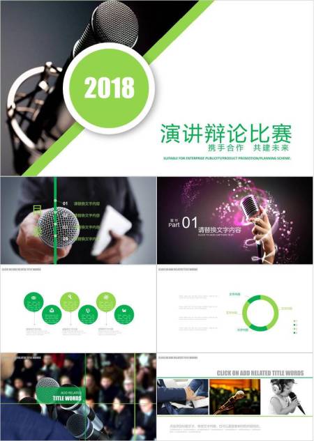 绿斜线实拍麦企业级演讲辩论PPT模板