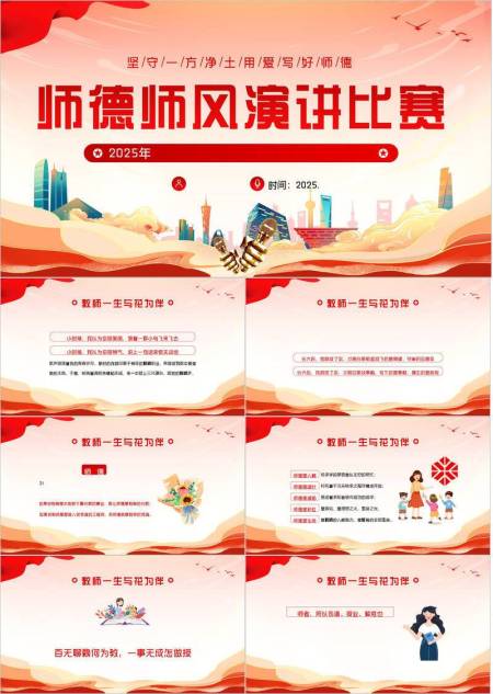教师节演讲比赛国潮风PPT模板