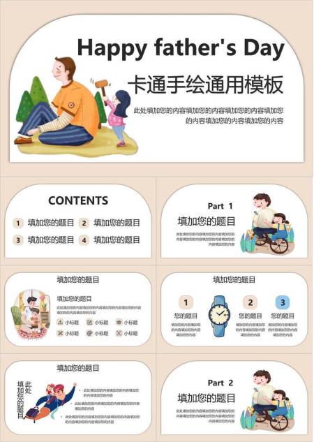 父亲节卡通手绘亲子嬉戏活动PPT模板