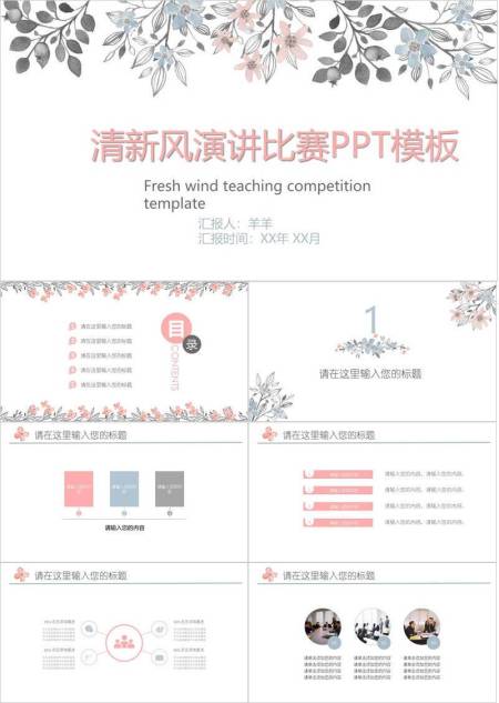 手绘枝叶清新文艺风演讲PPT模板