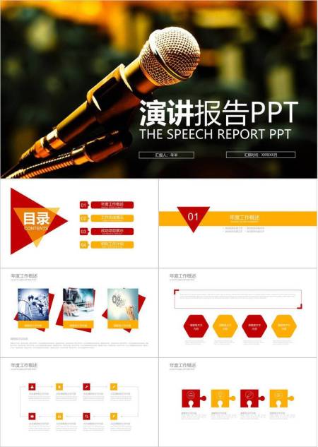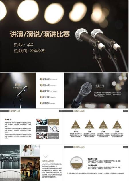 暗金双麦聚焦表达演讲比赛PPT模板