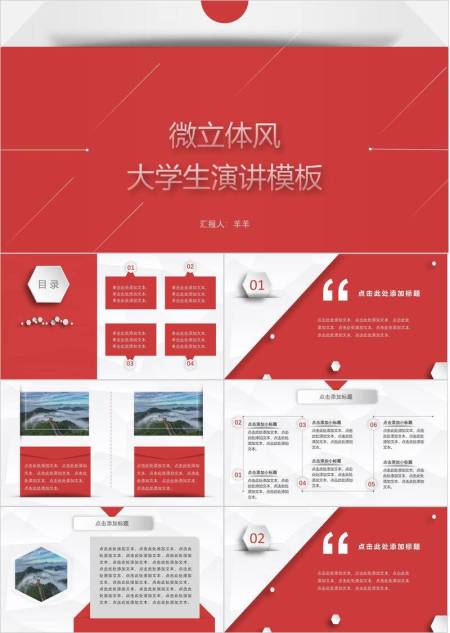 红白微立体几何大学生演讲PPT模板