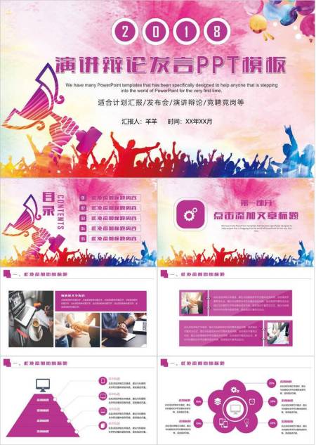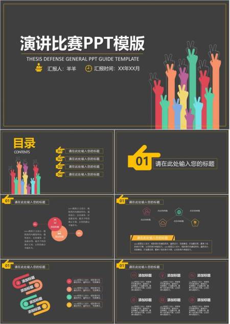 金框彩手势活力演讲竞赛PPT模板