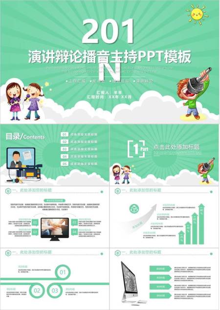下一个模板:绿底太阳卡通播音主持培训PPT模板