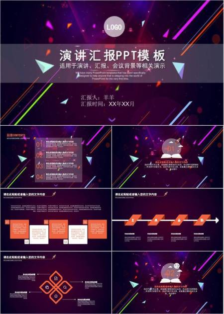 紫线粒子科技感演讲汇报通用PPT模板