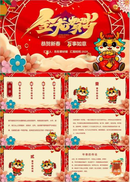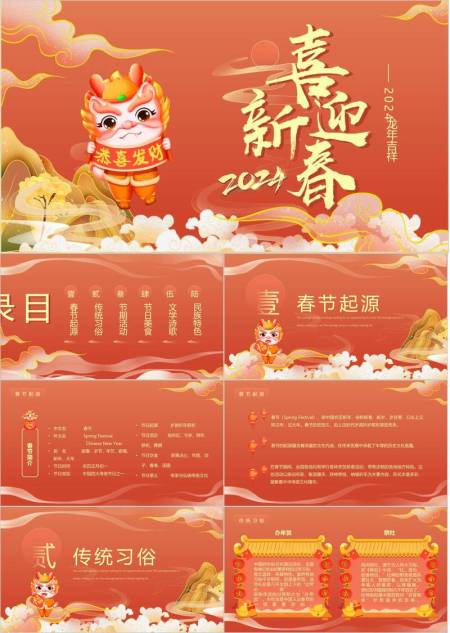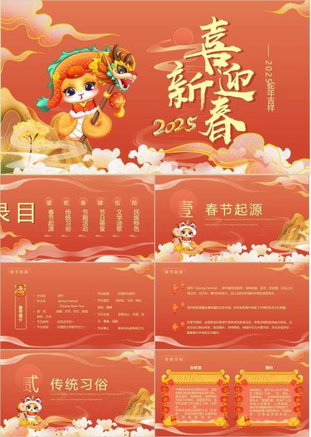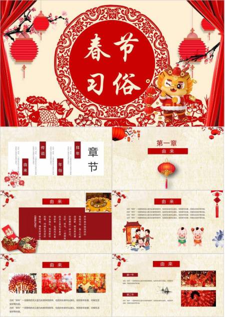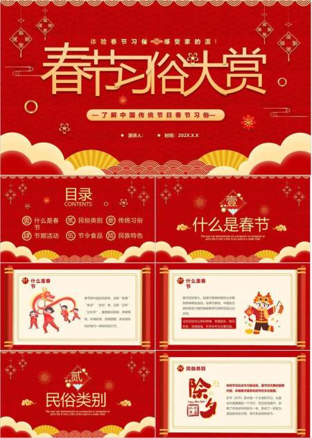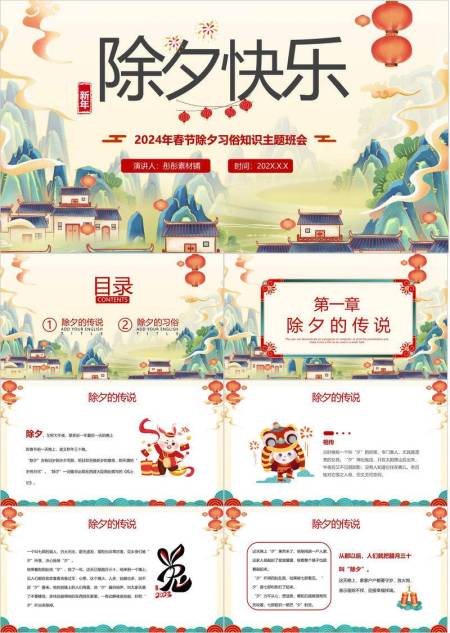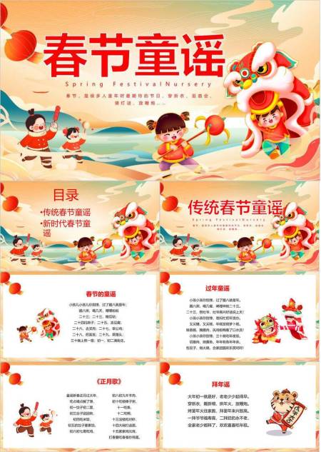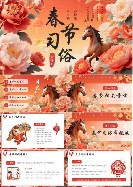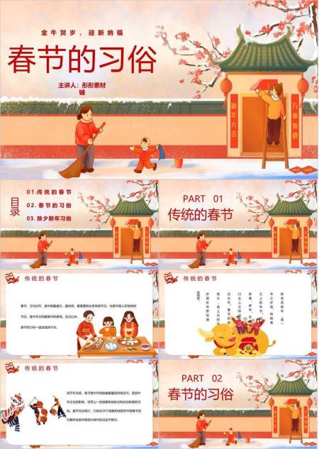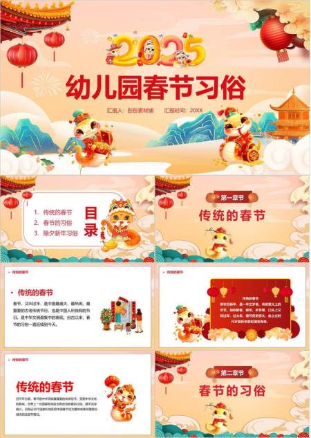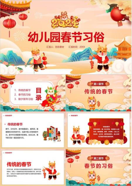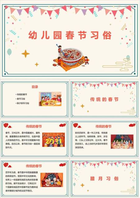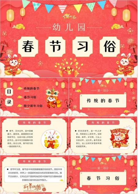 兔耳数字兔年幼儿园春节习俗课件PPT
