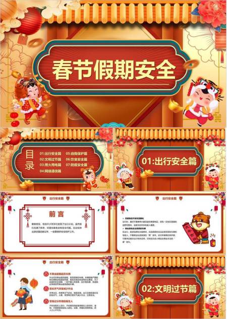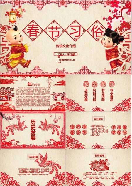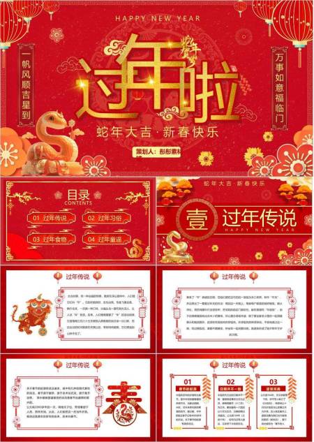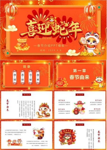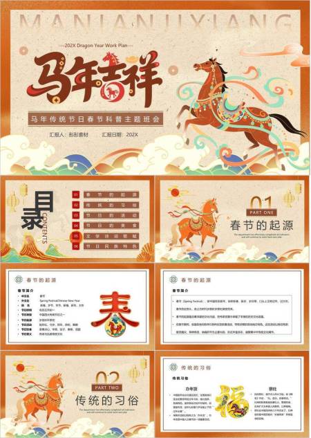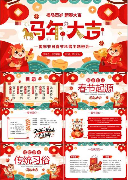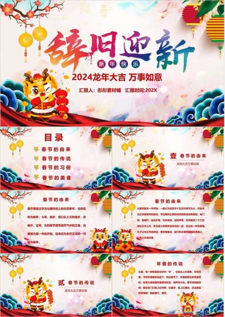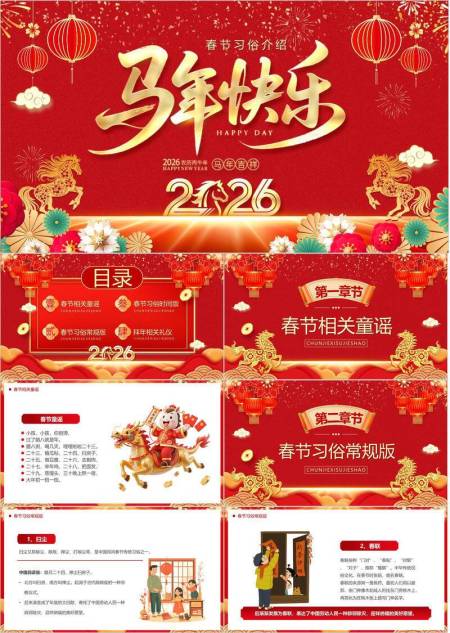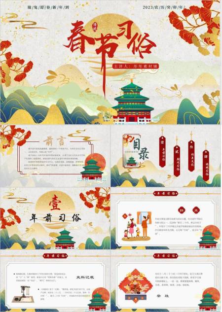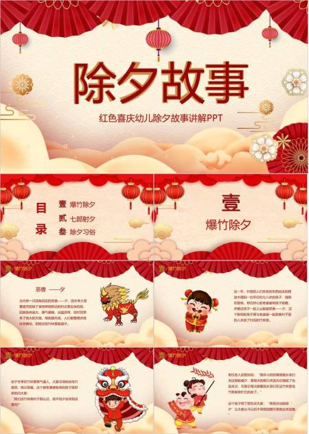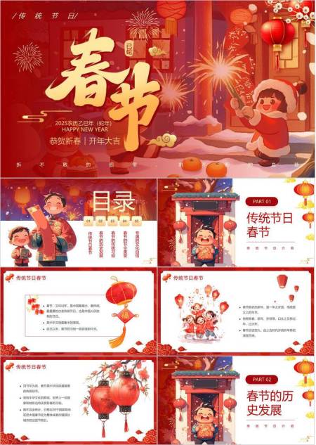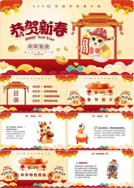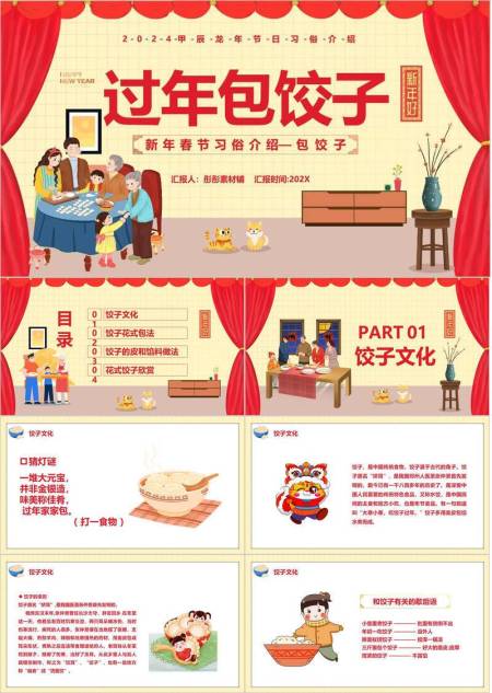 兔耳数字兔年幼儿园春节习俗课件PPT