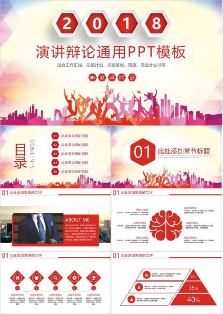 红六边形2018多用途演讲通用PPT模板