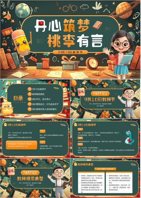 教师节庆祝3D卡通PPT模板