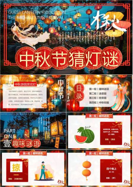 中秋节文化灯谜大会中国风PPT模板