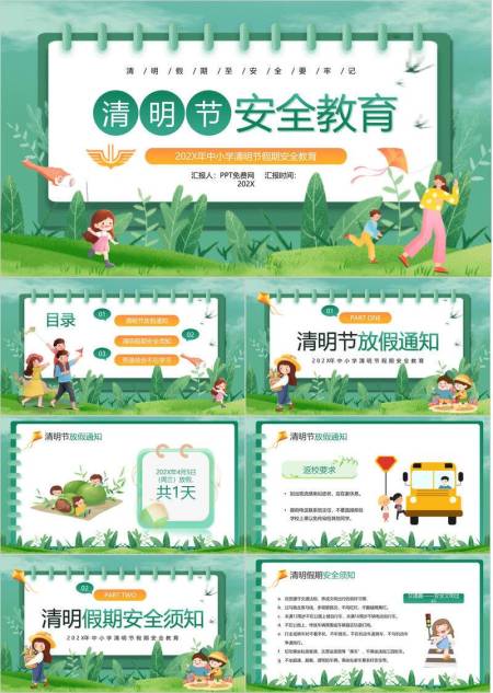 扁平插画清明节假期安全汇报PPT模板