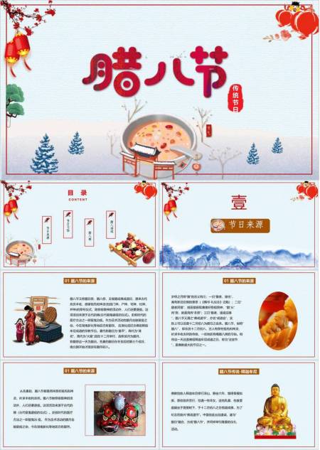 腊八节冬日国潮班会PPT模板