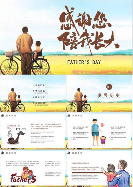 父亲节写实油画风陪伴成长PPT模板