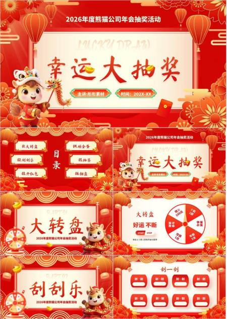 舞狮头龙灯红包企业年会幸运大抽奖PPT模板