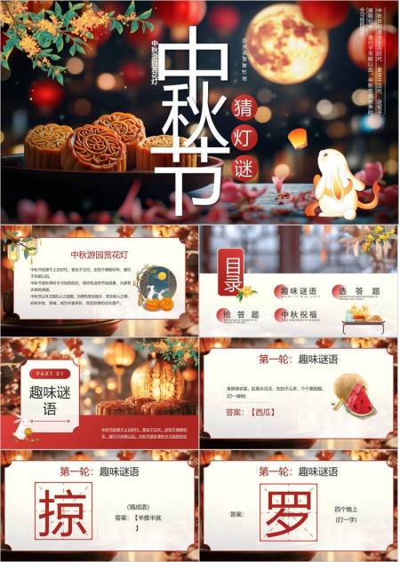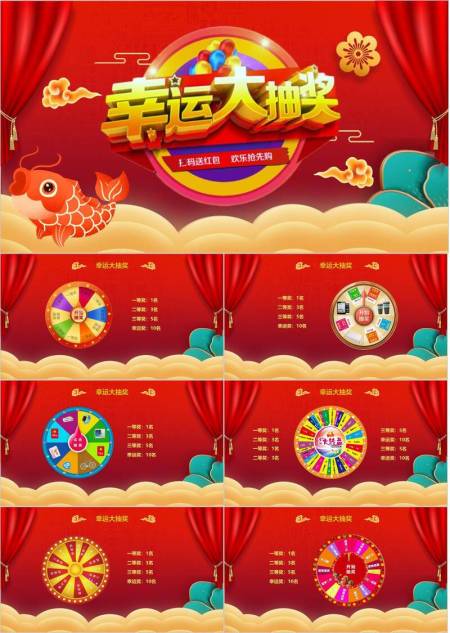 幕布拉开圆环锦鲤扫码抽奖促销PPT模板