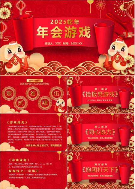 横幅卡通蛇波浪纹蛇年年会游戏PPT模板