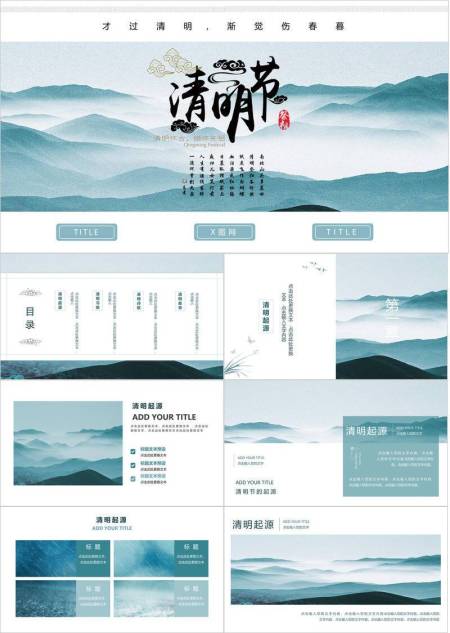 国风书法清明节祭祖文化PPT模板