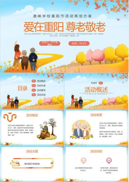 重阳节学校活动策划卡通PPT模板