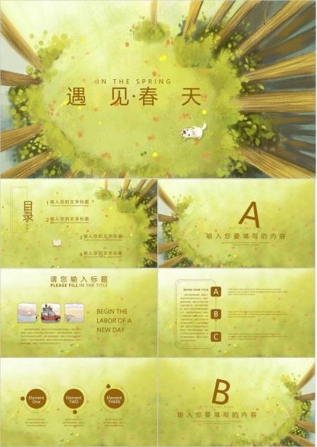 俯视森林小动物遇见春天动漫治愈系PPT模板