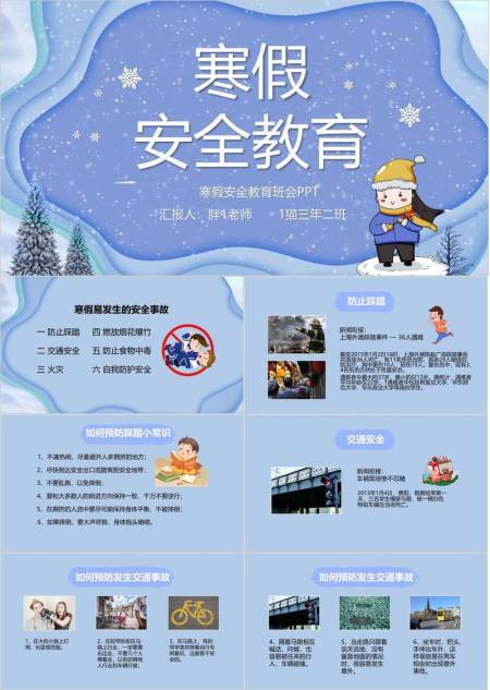 流线光效男孩雪花寒假安全班会PPT模板