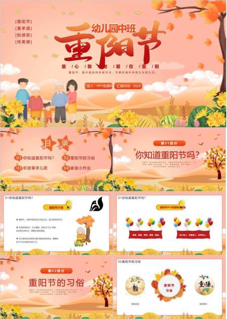 重阳节幼儿园活动卡通PPT模板