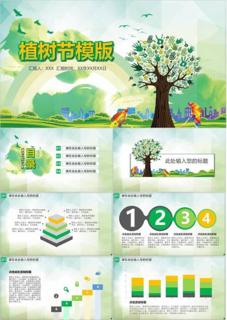 植树节校园活动卡通PPT模板