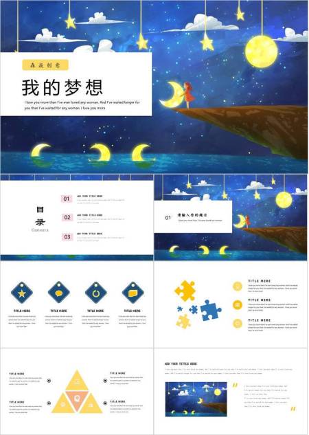 托举月亮女孩悬崖动漫浪漫梦想主题PPT模板