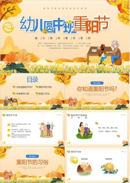 重阳节幼儿教育手绘PPT模板
