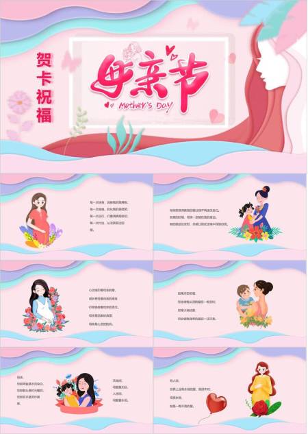 母亲节贺卡祝福微立体PPT模板
