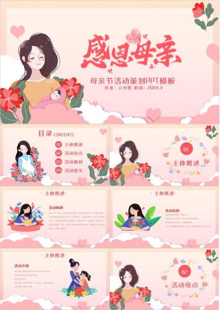 母亲节活动策划卡通PPT模板