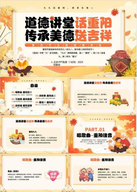 重阳节道德讲堂中国风PPT模板