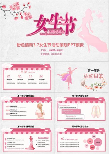 粉色清新文艺三七女生节活动策划PPT模板