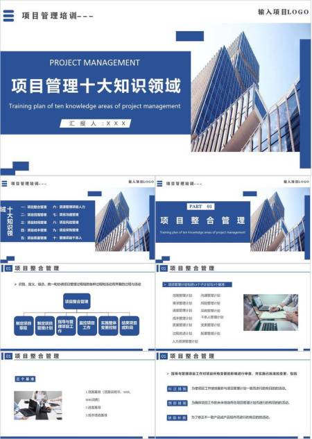 建筑实景背景项目管理十大知识领域培训PPT模板