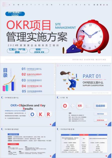 3D闹钟卡通OKR项目管理培训实施方案PPT模板