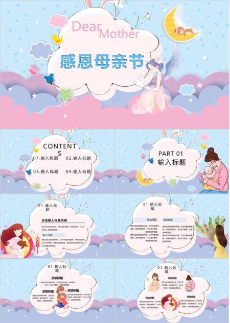眺望远方女孩粉蓝云朵动漫治愈系梦想PPT模板