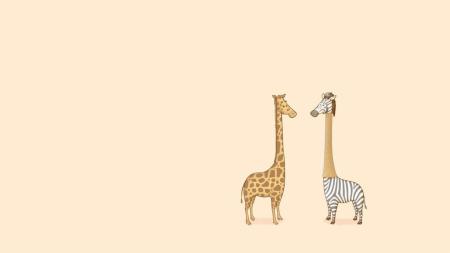 米色卡通风格双长颈鹿PPT背景