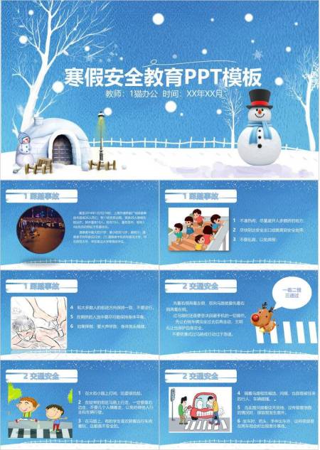 雪屋娱乐寒假安全责任倡导PPT模板