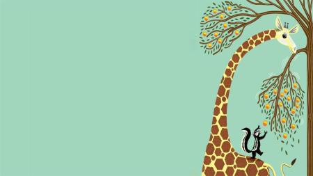 绿色卡通风格长颈鹿吃果PPT背景