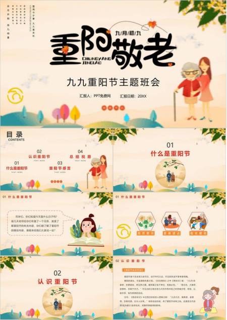重阳节主题班会卡通PPT模板