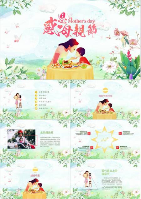 母亲节家庭聚会手绘PPT模板