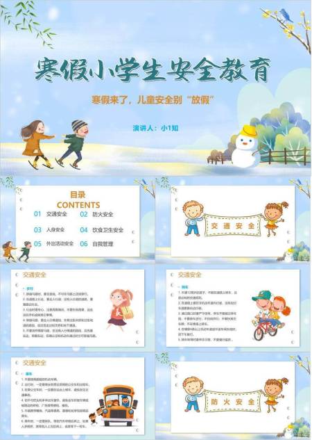 自然场景小学生寒假安全班会PPT模板