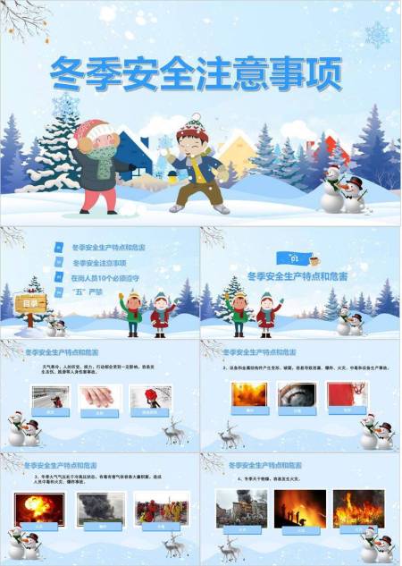 雪景儿童互动冬季寒假安全宣传PPT模板