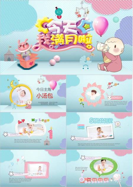 温馨宝宝满月儿童生日纪念海报PPT模板