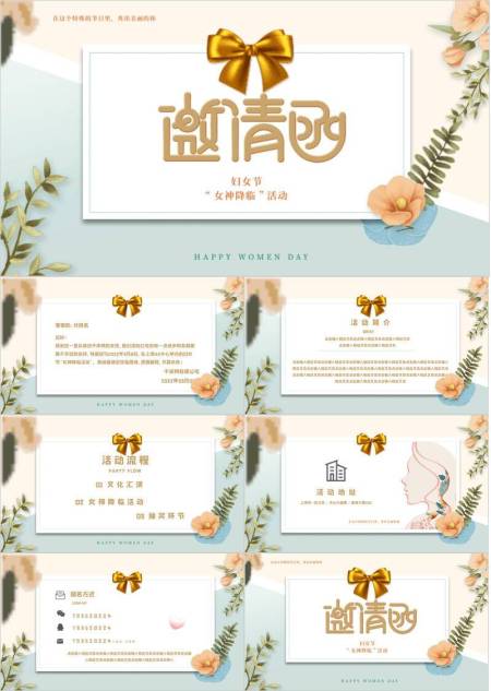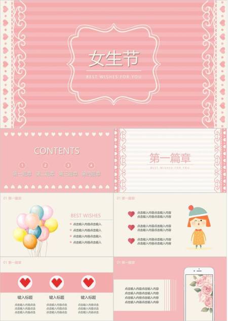 粉色欧美杂志风女生节祝福贺卡PPT模板