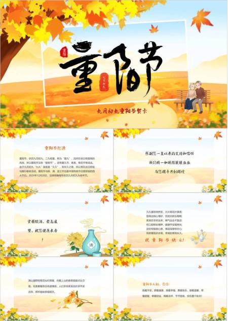 金色重阳贺卡祝福PPT模板