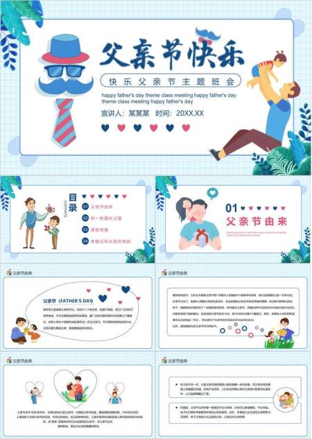 父亲节趣味卡通主题班会PPT模板