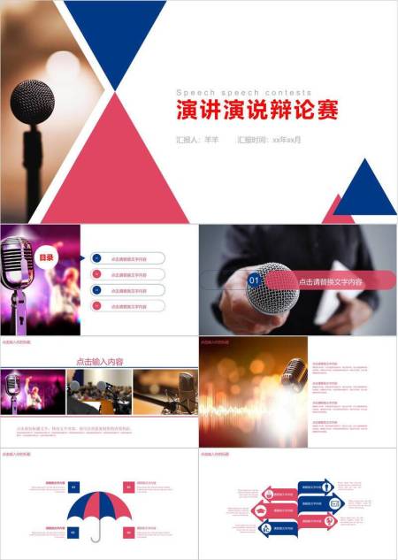 三角几何麦克风剪影演讲辩论PPT模板